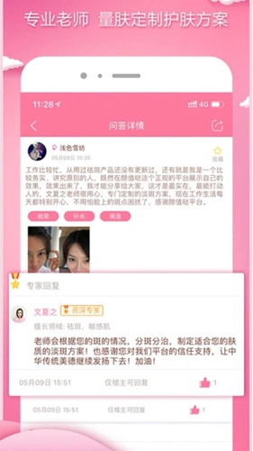 【美丽解答】集结扎根美业数十年的护肤专家、资深护肤顾问等大V坐镇,陪你聊色斑、聊痘痘、聊皱纹,谈成分、谈功效、扒内幕,24小时免费在线答疑。另外,更有来自全国各地的护肤达人、爱美人士,在此亲密互动、分享护肤经验。有了它,你的护肤之路不再孤单。