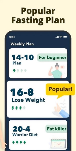 间歇断食追踪器有多种断食计划,适合初学者、有断食经验的人群,男性和女性。断食追踪器会引导你完成计划,无需改变饮食习惯,即可轻松坚持下去。如果你未满18岁,处在怀孕或哺乳期,有健康问题或体重过轻,请在断食前向医生咨询。