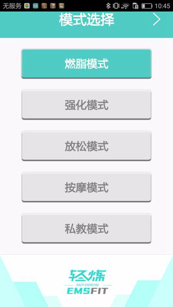轻炼是一款主打健身设备连接控制的软件,需要与相应的穿戴设备搭配使用,通过软件用户可以自行挑选想要设备执行的运作模式,例如燃脂模式、按摩模式、强化模式等,无论是用来放松肌肉,还是健身塑形都能轻松搞定,满足用户的使用需求!