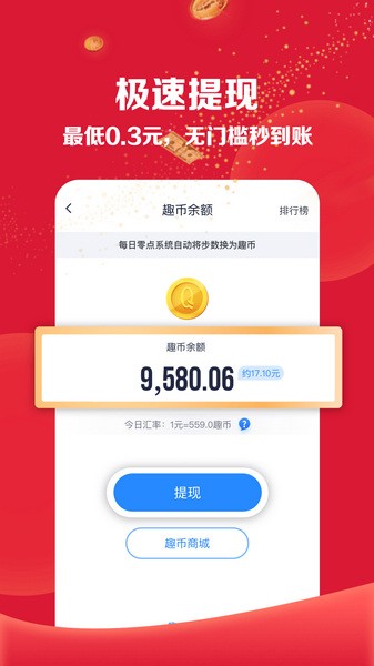 · 奖励机制——越健康,越富有,趣走给你趣币,让你的每一步都有“币”可得。