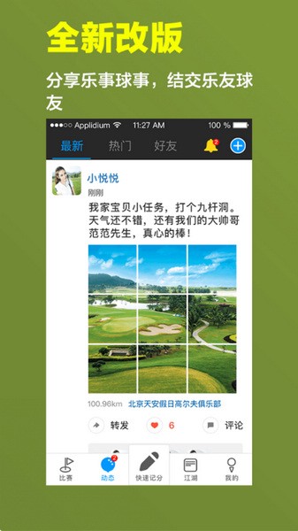 汇聚全国各地喜欢高尔夫的人,让你认识更多的朋友;
