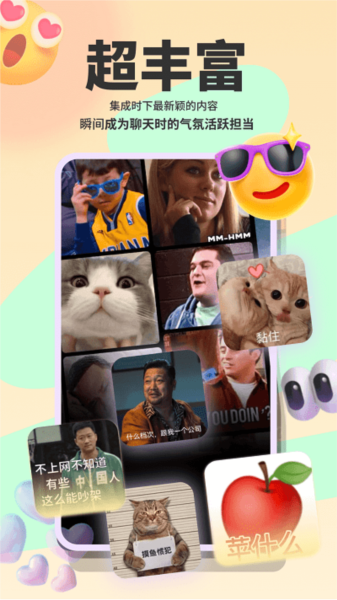 3.海量表情包:表情包大师拥有丰富多样的表情库,涵盖了各种风格和主题,无论你喜欢搞怪.可爱.萌系还是搞笑等类型的表情,都可以在这里找到。