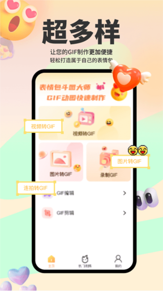 【一键编辑】可以将已经转换好的GIF表情包进行编辑、裁剪、增加文字等功能。