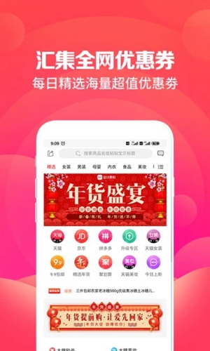 宜钱惠购APP是一款主打优惠购物的软件,界面简洁清爽,功能丰富,为用户网罗天猫、淘宝、京东、拼多多等各大电商平台优惠券,持续上新!且商品齐全种类繁多,囊括服装、美食、美妆、家居、母婴等,精选海量品牌好货实时推送向你种草!更有9.9包邮实惠好物每天抢不停!如果分享好友参与购买,还能享受返佣福利,自用省钱,分享赚钱!
