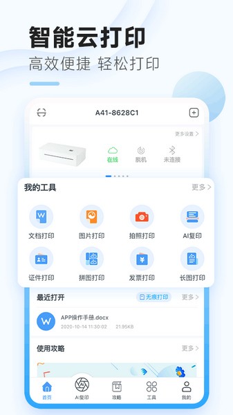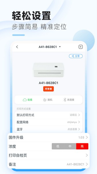 家印宝打印机app是一款与打印机设备配合使用的手机软件。这款软件能够为用户提供便利打印机管理功能,可以通过手机操作打印机,将需要打印的文件通过软件来让机器打印出来。同时,软件为用户提供多种打印预设模式,用户也可以自己去调整和保存设置,在面对不同打印要求的时候可以快速切换模式来进行操作,十分的方便。