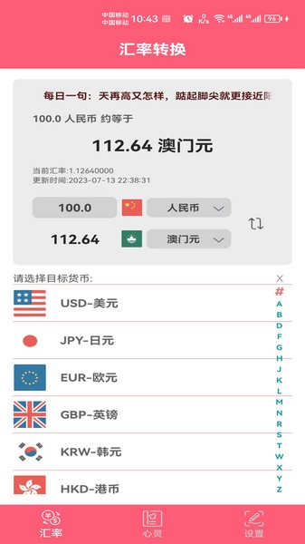 2、汇率快查app简洁明了的界面设计,操作简单,用户体验一流。