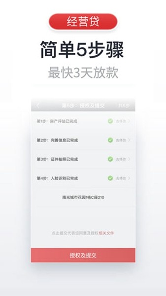 线上5步骤,线下跑1次,最快3天放款。