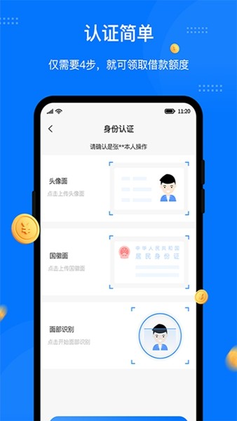 5、极速放款:只需三步骤轻松入驻,认证身份,上传照片证件即可,非常便利;