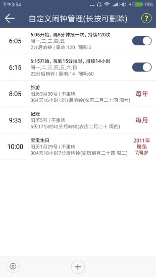 1、打开手机上的语音报时闹钟软件,可以添加闹钟