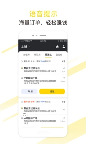 急先蜂骑手APP是一款专为外卖配送员设计的接单软件,界面简洁功能强大,全国范围内的骑手都能用它方便地接单。它的智能派单系统让工作轻松不少,订单信息也很清晰明了,包括取货和送货地点、距离、时间等,随时掌握订单动态。最棒的是还有实时语音提示,即使不看手机也能了解订单详情。