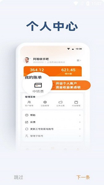 支持快递员绑定个人工号、支付宝账户、身份证等个人信息进行实名认证,实现快递总部给予快递员的个人奖励和派费补贴直达快递员钱包,奖励和个人充值也可实时提取。