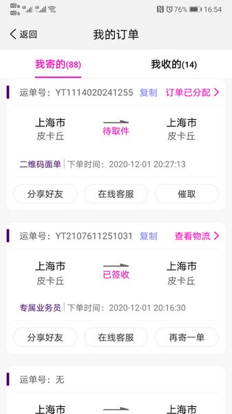 最让我喜欢的是它的地址填写功能特别准确,这样可以保证包裹能安全准时地送达收件人手中。另外,我还可以查询最近一个月的订单记录,随时追踪物品的状态,非常贴心实用。