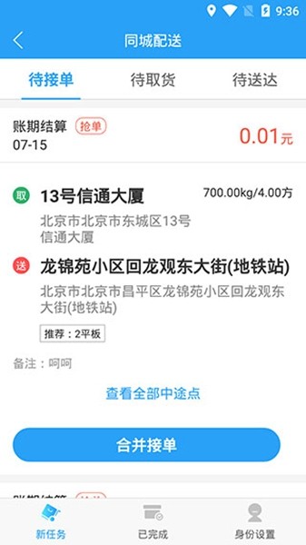 5、同城配送正常已完成订单运费会在24小时后进入待结算状态,司机可发起提现动作,运费会在两小时内提现到绑定的银行卡。
