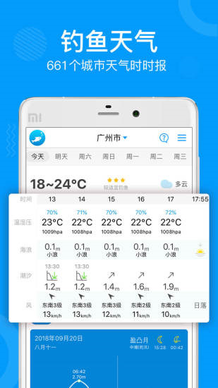 1、准确的钓鱼人天气预报,未来7天的潮汐、浪高、风向、气压等12项钓鱼天气实时查询
