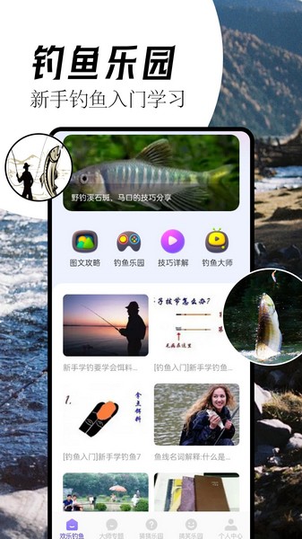 欢乐钓鱼大师助手是一款为钓鱼爱好者准备的钓鱼学习进阶软件。这款软件内含新手入门和高手进阶等不同阶段的攻略,无论是初学者还是老手都能够在这里找到自己需要的钓鱼技能信息和最新的钓鱼资讯。每个阶段的攻略都会从多个角度来分析钓鱼前的准备和钓鱼时的技巧,有许多容易被忽视的小细节都会被指出,还会提供钓点地图来推荐合适的垂钓点。