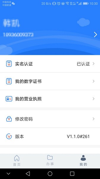 用户注册时,需要通过实名认证方能注册成功。实名认证成功后,系统会发放个人手机数字证书,作为用户已通过实名认证的凭证,同时用于后续业务办理时进行电子签名。