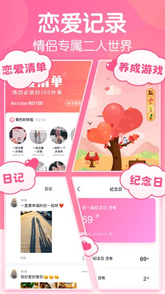1、日记:记录幸福的点滴,留住你我间的美好回忆,只有彼此间能看到哦。
