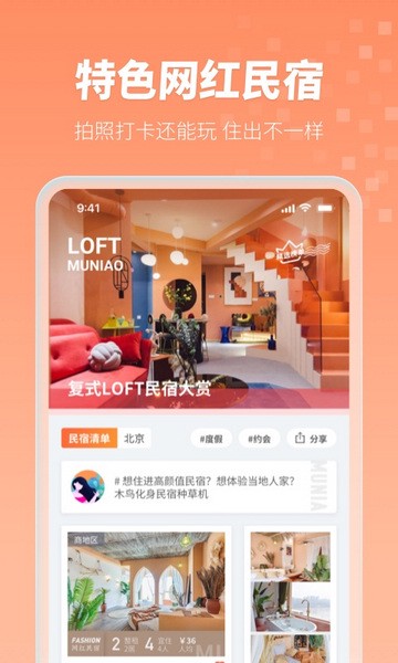 特色房源任你挑:我们精选木屋、别墅、海景房、LOFT、主题特色房等特色民宿,让您的出游别具一格。