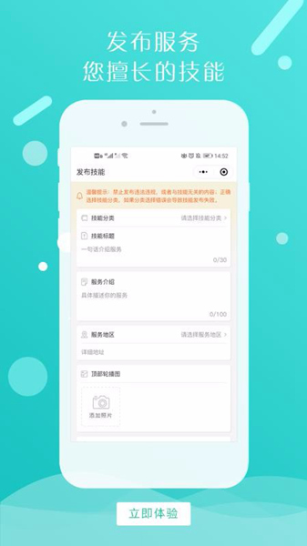 6、在平台共享自己的服务技能,通过平台推送的方式,帮助你匹配接单;