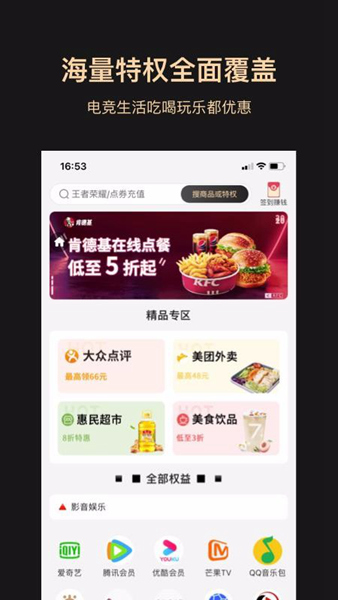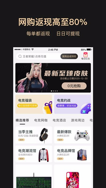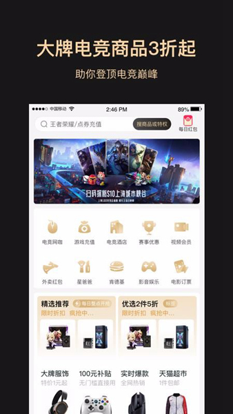2、提供电竞生活购物服务,吃喝玩乐全都有,享受更全面的优惠服务;