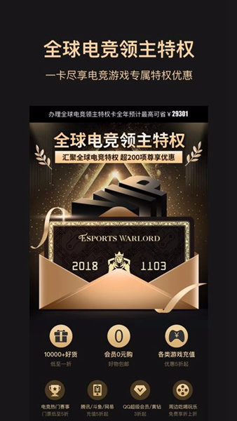 3、全球电竞领主特权目前超百项大牌优惠,尊享领主特权。