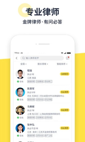 律律律师端app为用户提供快速咨询、一对一找律师、代写文书等服务;