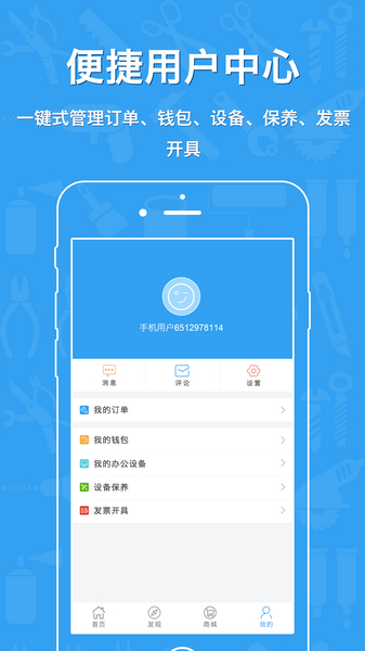 一键式管理订单、钱包、设备、保养、发票开具。