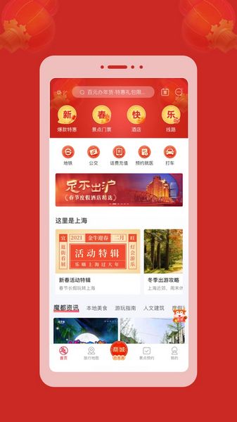 游上海app官方版是一款出行服务软件,初次去上海游玩的朋友,该软件是真的不能过软件为大家提供最贴心的旅游攻略,让你可以在上海好好的玩一番,自由旅行或是组团旅行都是可以的哦,可让您享受到最舒适的旅行时光,而且还能这里完成上海各种旅游景点门票的订购操作,让用户们减少了很多时间的耗费,更好地完成各类旅游事宜!
