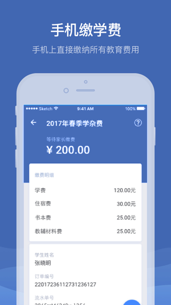 3.与“教育收费平台”对接,接收学校发布的缴费订单,并直接在手机完成缴费。