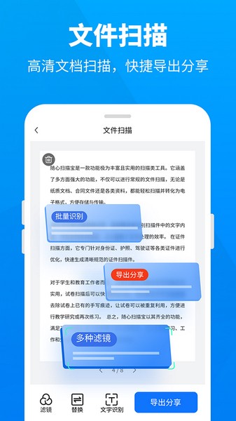 1、用户可以使用随心扫描宝app扫描各样文件,支持批量萨搜扫描;