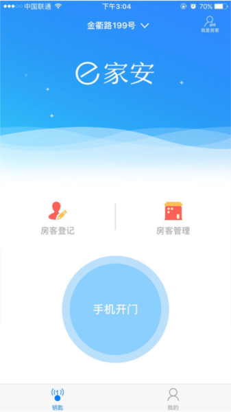 3、点击首页,用户可以点击一键开门