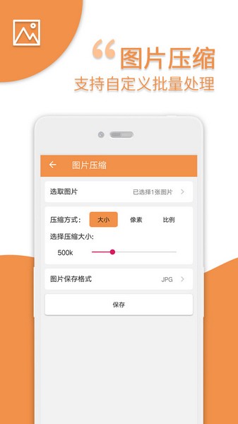 1、智能图片压缩:根据大孝清晰度、比例进行图片处理,自定义图片尺寸及照片保存方式。