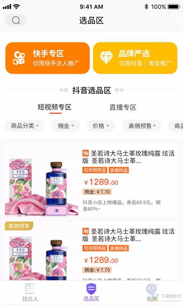 3、拥有抖音专区以及快手专区,为不同短视频平台博主提供便捷的带货渠道;