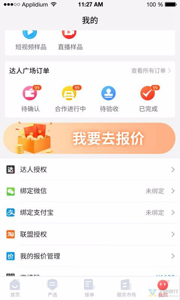 3、选择达人注册登录后就可以在线接单带货赚钱了