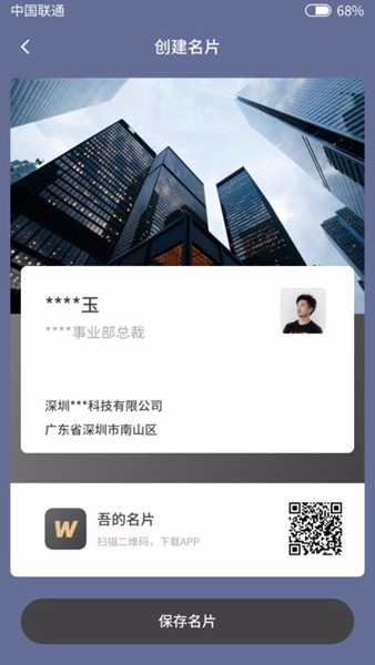 我个人觉得这个软件真的很实用,尤其是对做生意的人来说,简直就是利器!你可以通过短视频或产品展示吸引客户,还能快速生成名片并分享到微信、微博,扩大人脉圈 totally容易。最棒的是,名片还可以在线预览甚至一键印刷,方便又快捷。总之,“吾的名片”不仅能帮你拓展人脉,还能提升工作效率,绝对值得试试!
