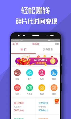 糯米狗兼职APP是一款主打在线兼职接单的软件,帮助自由工作者、学生高效寻找兼职工作,其界面简洁清爽,功能丰富强大,汇集多样兼职类型,囊括家教、家政、推广专员、礼仪、客服、调研等,满足用户的兼职需求,在寻找到心仪工作时,用户还可以随时向负责人在线及电话询问相关事项,并支持在线选择报名日期,最后按商家制定面试日期,前往相应地点即可!同时软件还搭配了多种任务功能,完成还能获取红包,此外邀请好友加入最高可享1000+现金奖励,轻松赚更多!
