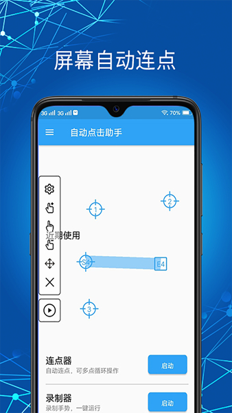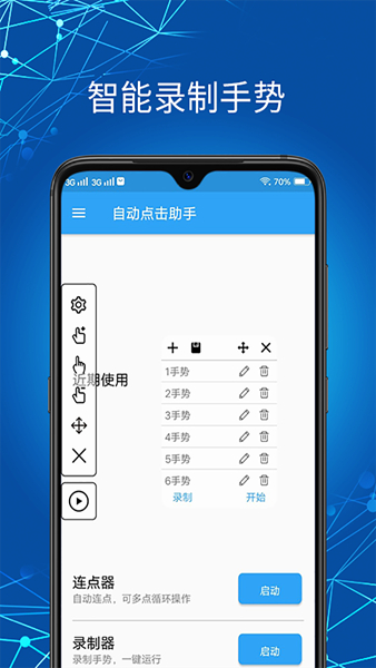 可以单点自动点击、多点自动点击、点击加滑动组合等各种手势。