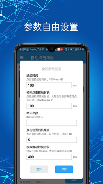 2.你可以任意设置点击位置、点击频率、滑动手势等操作。适合障碍人士使用。