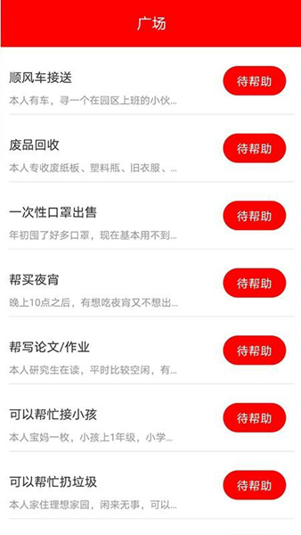 软件还有好多特色功能,比如可以在广场上找到各种技能服务者,线上直接报名参与帮助,还能快速和用户沟通。另外,如果有闲置物品,也可以通过平台置换。最棒的是它支持实时查看需求状态,随时掌握最新动态。如果遇到不好的体验,还可以一键投诉,这点设计得很贴心。