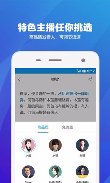 特色主播任你挑选,具备高品质发音人,还可以调节语速快慢;