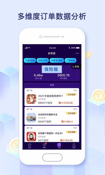 4、订单数据可以实时查看,能够一览多维度的订单数据分析
