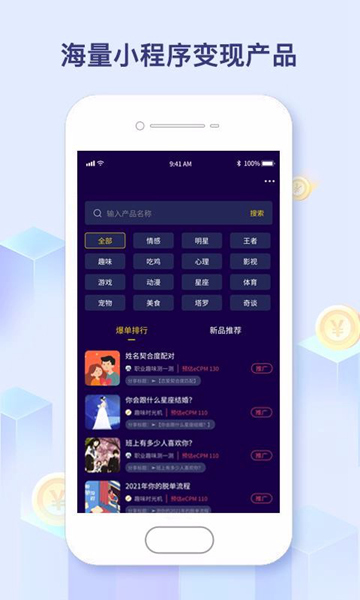 还有就是他们的小程序种类特别多,情感、动漫、游戏、心理的都有,完全能满足不同创作者的需求。而且推广佣金比其他平台高很多,提现也方便,绑定微信钱包就能直接用了。