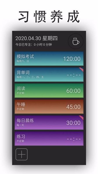 1、可以添加习惯养成任务,每天就可以根据自己添加的任务进行工作和学习;