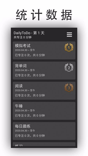 日常ToDo Pro是一款习惯养成、专注记时的软件,如果想要让自己的生活更有规律,那么这款软件可以帮助你解决不少问题!用户可以自行选择将设置各种想要养成的习惯,例如阅读、午睡、晨练等,并能设置每个内容的优先级,在到点前还会即时提醒,避免用户遗忘!且软件会实时统计每项任务的完成情况,例如次数和时长,以便鞭策自己努力!