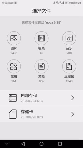 3、内部存储文件和存储卡存储的文件都可以快速共享