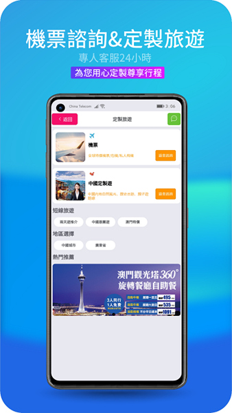 3、机票咨询及定制旅游,专人客服24小时为你提供服务;