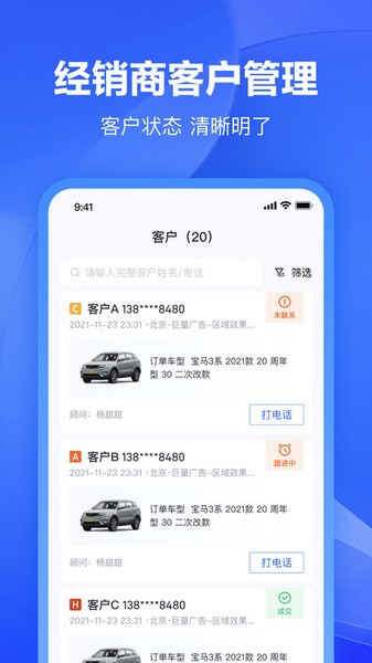 这款叫做“懂车帝卖车通”的App看起来挺厉害的,主要是为了买卖汽车提供方便。它不仅有很多新车和二手车的信息,还能根据用户的需求筛选车型,感觉特别实用。对于经销商来说,这个软件也能帮忙管理客户,随时了解他们的购车需求,还能一键联系客户,效率很高。