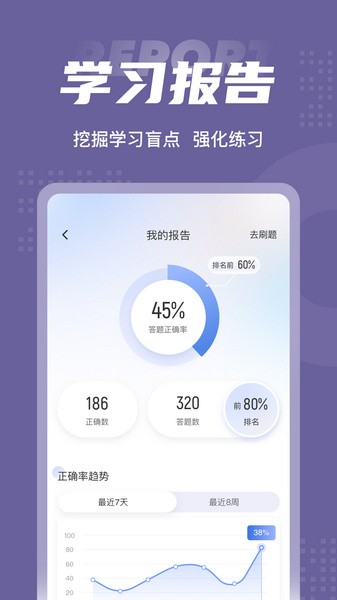 软件亮点还包括强大的搜题功能,支持语音和拍照搜题;高质量的模拟试卷让用户可以根据自身需求选择练习;多样化的刷题模式则覆盖了全国通用卷和地区卷等多种考试类型。此外,模拟考试功能让用户体验真实的考试环境,成绩单实时反馈学习状态。