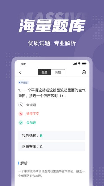无人机驾驶员题库新增搜题功能,无人机驾驶员考试中的疑问一搜便知,更支持语音和拍照搜题。