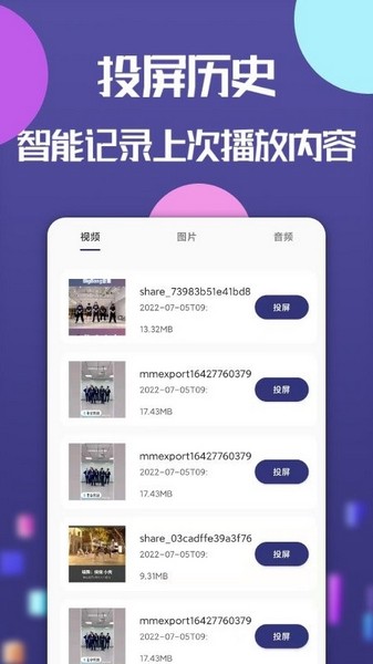 【投屏历史】随时记录上次投屏内容,方便查找。
